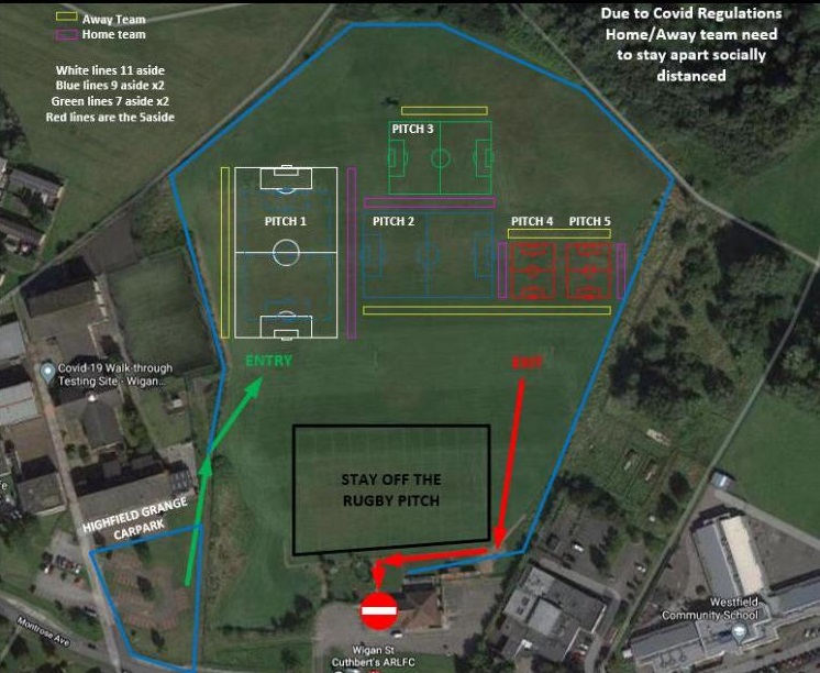 Please park on Central Park to the left of St Cuthberts Rugby. Use the path along the right hand side of the rugby club to enter the pitches. Please use the one way system and leave through club house gate. Please make sure you do not cross the rugby pitch.